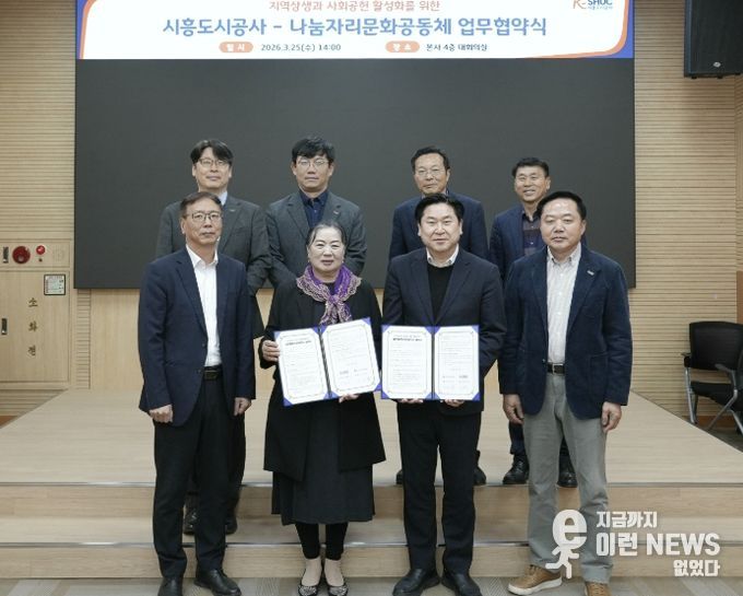 이런뉴스(e-runnews) 김삼성 기자 | 시흥도시공사는 지난 25일, 나눔자리문화공동체와 지역상생과 사회공헌 활성화를 위한 업무협약을 체결했다고 밝혔다.