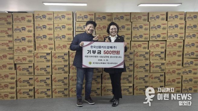 이런뉴스(e-runnews) 김삼성 기자 | 의왕시는 한국신용카드결제(주)가 3월 25일, 관내 취약계층 지원을 위해 500만원 상당의 물품(라면 등)을 의왕시푸드뱅크에 기부하며 지역사회에 따뜻한 마음을 전했다고 밝혔다.