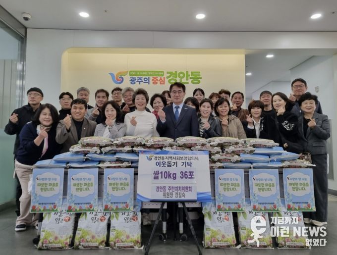 이런뉴스(e-runnews) 김삼성 기자 | 광주시 경안동 주민자치위원회는 지난 25일 경안동 지역사회보장협의체에 어려운 이웃을 위해 백미 36포(10㎏)를 전달했다.
