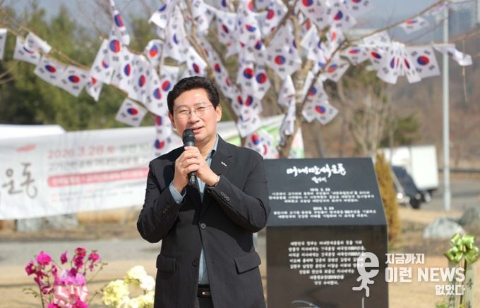이 시장은 “107년 전 3월 29일 선열들이 독립과 자유를 쟁취하기 위해 모여서 대한독립만세를 외치며 우리 민족의 위대한 저력과 힘을 보였다”며 “오늘 행사로 우리가 107년 전 분연히 떨쳐 일어난 선열들의 행동을 기억하는 것은 다시는 그 누구도 빼앗지 못할 우리의 내일을 만들기 위해서라고 생각한다”고 말했다.