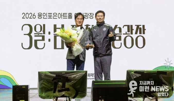 이런뉴스(e-runnews) 김삼성 기자 | 용인문화재단 김혁수 대표이사가 지난 3월 27일 용인포은아트홀 야외광장에서 열린 ‘제철 예술광장 '3월:봄'’ 행사 현장에서 이상일 용인특례시장으로부터 공로패를 받았다. 이번 공로패는 재임 기간 동안 용인문화재단 운영 전반에서 축적된 성과와 공적을 종합적으로 인정한 데 따른 것이다.