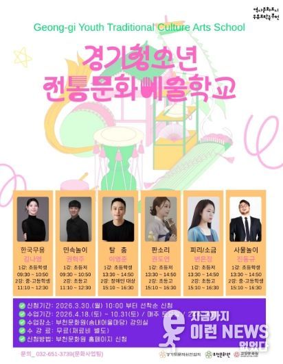 이런뉴스(e-runnews) 김삼성 기자 | 부천문화원은 청소년들의 전통문화 참여 기회를 확대하고 경기지역 전통민속예술의 지속 가능한 전승 기반 마련을 위한 ‘2026 경기청소년전통문화예술학교’ 참여 학생을 모집한다.