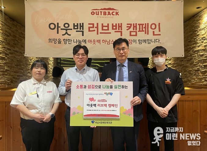 이런뉴스(e-runnews) 김삼성 기자 | 하남시장애인복지관은 3월 25일 아웃백 스테이크하우스 하남 스타필드점과 함께 2026년 첫 번째 '아웃백 러브백 캠페인'의 나눔 반상 행사를 성황리에 마쳤다고 밝혔다.