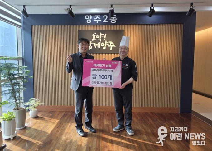 이런뉴스(e-runnews) 김삼성 기자 | 양주시 양주2동은 최근 나블리베이커리카페로부터 빵 100개를 기부받았다고 밝혔다.