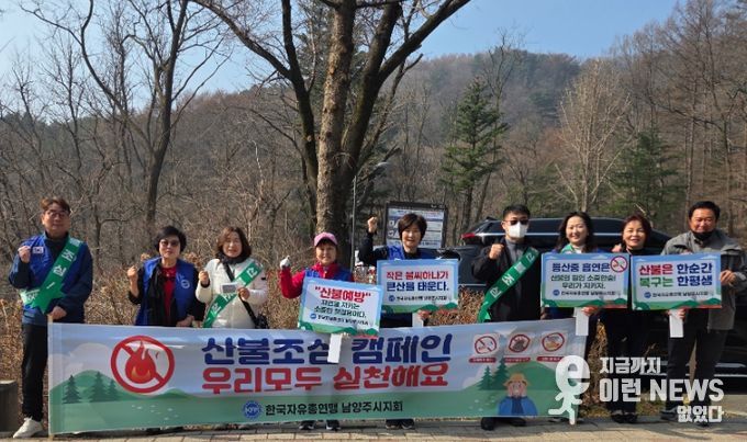 이날 캠페인에는 한국자유총연맹 남양주시지회 회원 10명이 참여해 주요 등산로 입구와 탐방로 일대에서 산불 예방 홍보 활동을 펼쳤다.