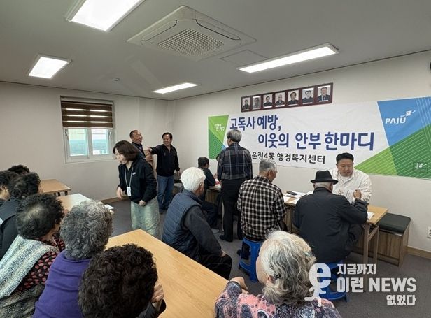 이런뉴스(e-runnews) 김삼성 기자 | 파주시 운정4동은 지난 26일 상지석2리 경로당에서 고독사 예방을 위한 홍보 활동과 이동상담센터 운영을 함께 추진했다.