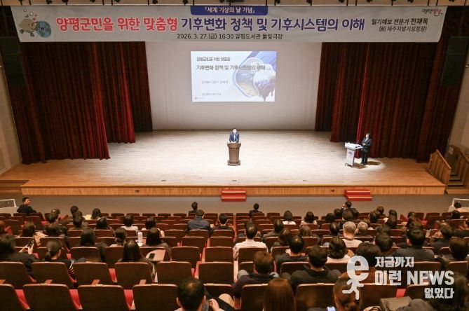 이런뉴스(e-runnews) 김삼성 기자 | 양평군은 지난 27일 양평도서관 물빛극장에서 ‘세계 기상의 날’을 기념한 환경교육을 성황리에 개최했다고 밝혔다.