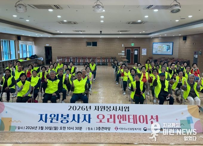 이런뉴스(e-runnews) 김삼성 기자 | 이천시가 지난 3월 30일 이천시노인종합복지관에서 ‘2026년 자원봉사자 오리엔테이션’을 성황리에 개최했다고 밝혔다.