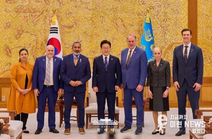 이런뉴스(e-runnews) 김삼성 기자 | 이재명 대통령은 3월 31일 오후 청와대에서 아미 베라(Ami Bera) 하원 동아태소위원회 간사 등 공화·민주 양당 의원으로 구성된 미국 의회 코리아스터디그룹 대표단을 접견하고 최근 중동 전쟁, 한미관계, 한반도 문제 등에 대해 의견을 나눴다.