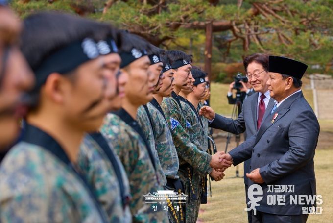 이런뉴스(e-runnews) 김삼성 기자 | 이재명 대통령과 국빈 방한한 프라보워 수비안토 인도네시아 대통령은 오늘 오후 청와대 녹지원에서 육군 태권도 시범대 공연을 관람했다.