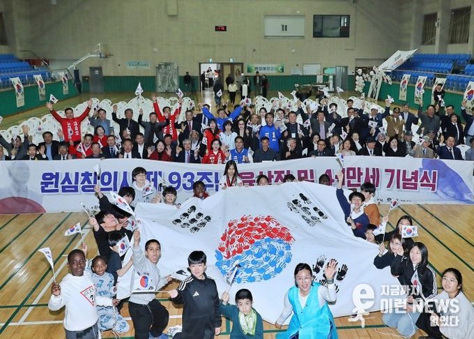 이런뉴스(e-runnews) 김삼성 기자 | 제93주년 육삼정의거 및 4.1만세 기념식이 지난 1일 평택시 팽성레포츠공원 실내체육관에서 열려 항일정신과 순국선열의 뜻을 기리는 자리가 마련됐다.
