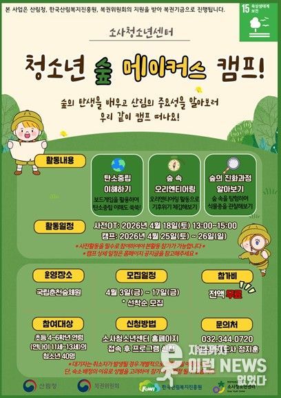 김미희 소사청소년센터장은 “숲 기반 활동을 통해 산림의 가치를 인식하고 생태감수성을 함양하기 바란다. 나아가 일상 속에서 친환경 활동을 자발적으로 주도하는 청소년으로 성장하길 기대한다”고 전했다.