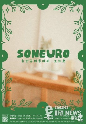 이런뉴스(e-runnews) 김삼성 기자 | 여주시청년활동지원센터 푸릇은 오는 4월 청년공예동아리 'soneuro(소느로)' 참여자를 모집한다고 밝혔다.