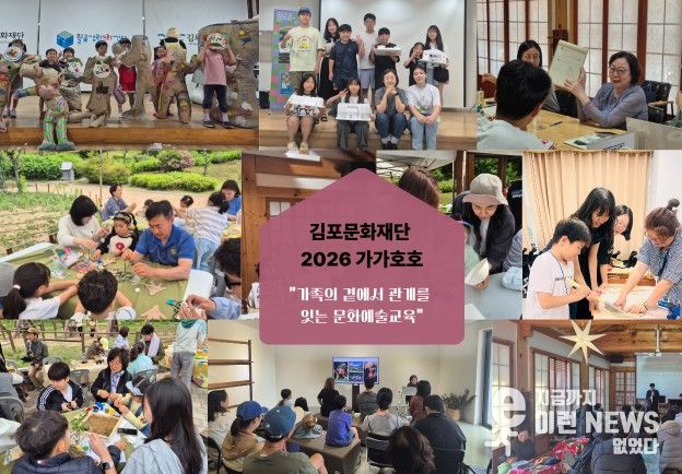 이런뉴스(e-runnews) 김삼성 기자 | (재)김포문화재단은 한국문화예술교육진흥원이 주관하는 ‘2026 생활밀착형 문화예술교육 지원사업 가가호호(家加好好) 운영기관 공모’에 선정됐다고 밝혔다.