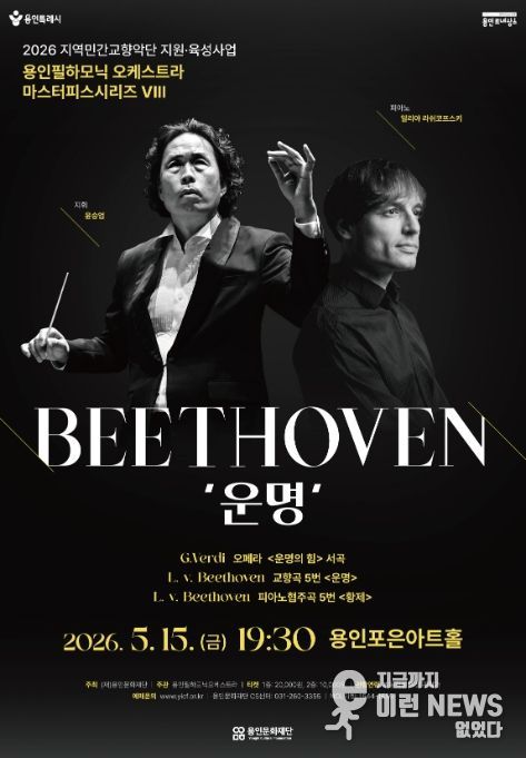 이런뉴스(e-runnews) 김삼성 기자 | 용인문화재단은 오는 5월 15일 오후 7시 30분 용인포은아트홀에서 ‘2026년 지역민간교향악단 지원·육성사업’의 첫 공연으로 용인필하모닉오케스트라의 기획공연 '마스터피스 시리즈 Ⅷ - 베토벤 ‘운명’'을 선보인다.