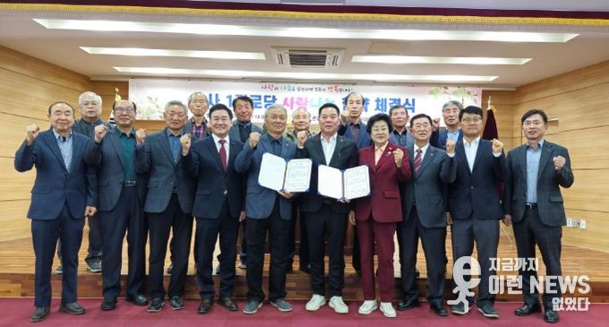 ‘1사1경로당’협약은 관내 기업이나 단체가 경로당과 1:1 결연을 맺어 후원과 봉사를 실천하는 사업이다. 이번 협약식에는 신둔농협(조합장 정하용)과 신둔면 분회 및 관내 29개소 경로당이 참여해 지역 어르신들의 복지 증진을 위해 상호 협력하기로 했다.