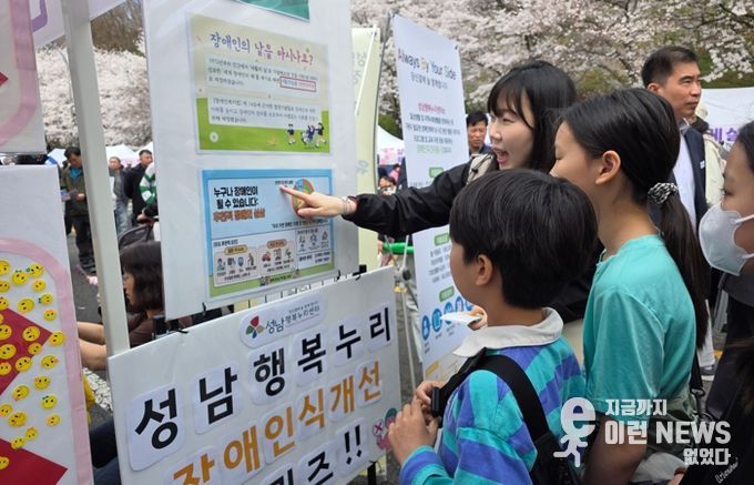 이런뉴스(e-runnews) 김삼성 기자 | 성남행복누리센터는 지난 4월 4일, 벚꽃축제추진위원회가 주최한‘제2회 도촌 봄맞이길 벚꽃축제’와 연계하여 지역 주민들을 대상으로 한‘장애인식개선 캠페인’을 성황리에 진행했다고 밝혔다.