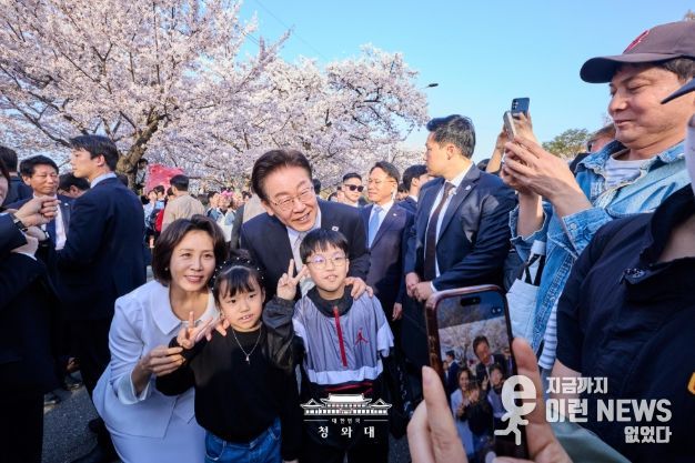 이런뉴스(e-runnews) 김삼성 기자 | 여의도 순복음교회에서 부활절 연합 예배를 마친 이재명 대통령과 김혜경 여사는 여의도 윤중로에 나가 벚꽃놀이를 즐기러 온 시민들과 깜짝 소통에 나섰다.