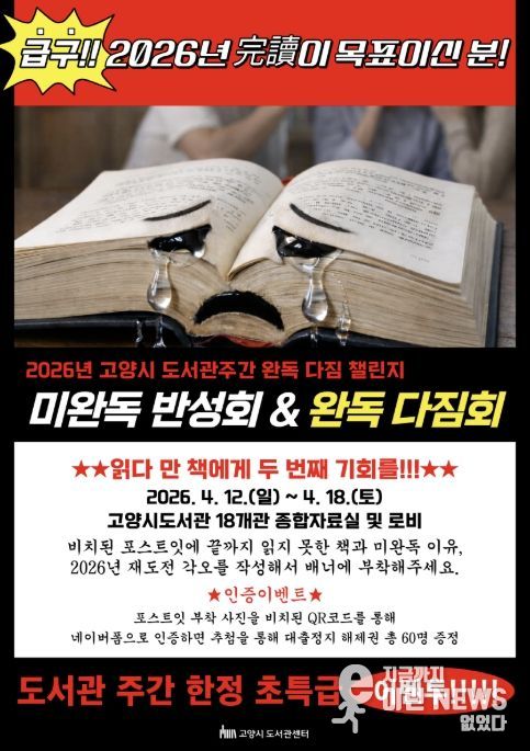 이런뉴스(e-runnews) 김삼성 기자 | 고양특례시가 ‘도서관의 날’을 맞아 오는 12일부터 18일까지 일주일간 도서관 주간을 운영한다. 단순한 독서 장려를 넘어 도서관을 시민의 일상 속 문화·체험 공간으로 확장하겠다는 구상이다.