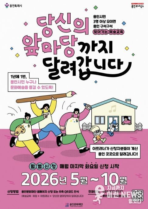 이런뉴스(e-runnews) 김삼성 기자 | 용인문화재단은 시민이 원하는 시간과 장소로 직접 찾아가는 2026 찾아가는 예술교육 '당신의 앞마당까지 달려갑니다'의 참여자를 오는 4월 7일부터 모집한다.