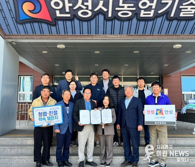 이런뉴스(e-runnews) 김삼성 기자 | 안성시 농업기술센터 축산정책과가 지역 축산단체들과 손잡고 투명하고 공정한 행정 실현을 위한 '청렴 행보'에 본격적으로 나섰다. 시는 지난 4월 2일, 안성시 축산단체협의회와 함께 청렴 협약식을 개최하고 신뢰받는 축산행정 구현을 위한 협력 기반을 강화했다고 밝혔다.