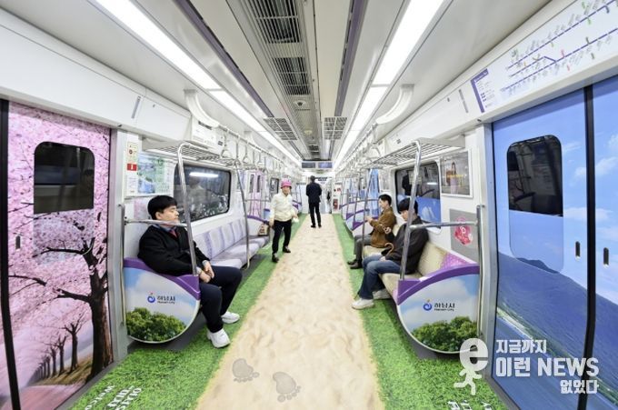 오는 9월까지 약 6개월간 운행되는 풍경열차는 하남선 전동차 1개 객차를 대상으로 운영된다. 객차 내부는 미사한강모랫길의 부드러운 질감과 하남벚꽃길의 화사함, 그리고 평화로운 한강의 풍경이 빈틈없이 랩핑되어 승객들에게 마치 하남의 명소 한복판으로 걸어 들어온 듯한 시각적 압도감을 선사한다.