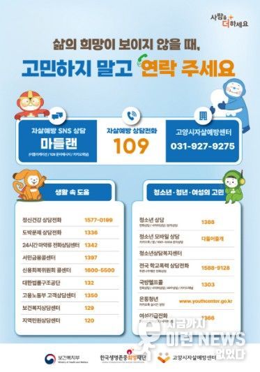 이런뉴스(e-runnews) 김삼성 기자 | 고양특례시 고양시자살예방센터는 자살 예방을 위한 집중 관리와 홍보 활동을 본격 추진한다고 7일 밝혔다.