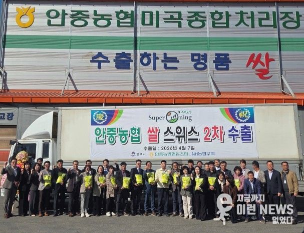 이런뉴스(e-runnews) 김삼성 기자 | 평택시는 7일 안중농협 임직원과 농협중앙회, NH농협무역 관계자들이 참석한 가운데 안중농협 미곡처리장(RPC)에서 지역 대표 브랜드 ‘슈퍼오닝 쌀’ 스위스 수출 기념식을 진행했다.