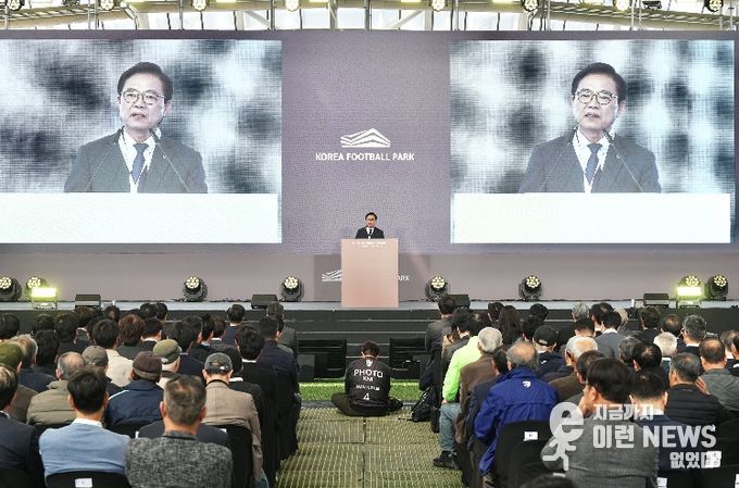 7일 천안시 서북구 입장면 가산리 일원에서는 김석필 천안시장 권한대행 부시장과 김태흠 충남도지사, 정몽규 대한축구협회 회장 등 400여 명이 참석한 가운데 코리아풋볼파크 개관식이 열렸다.