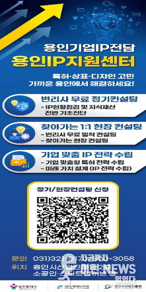 이런뉴스(e-runnews) 김삼성 기자 | 용인특례시는 지역 기업의 지식재산(IP) 경쟁력 강화와 핵심 기술 보호를 위한 ‘용인IP지원센터’(이하 센터) 프로그램 참여 기업을 상시 모집한다고 8일 밝혔다.