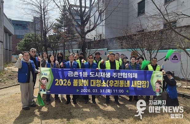 이런뉴스(e-runnews) 김삼성 기자 | 파주시 금촌1동 도시재생 주민협의체가 지난 3월 31일 주민들에게 쾌적한 도시환경을 제공하기 위해 녪봄맞이 대청소(우리동네 새단장)’활동을 대대적으로 실시했다.