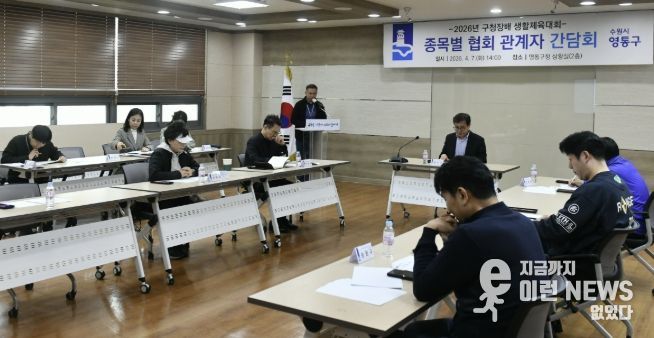 이런뉴스(e-runnews) 김삼성 기자 | 수원시 영통구는 지난 7일 구청 상황실에서 ‘2026 영통구청장배 생활체육대회’의 성공적 개최를 위해 종목별 체육협회 관계자들과 간담회를 가졌다고 밝혔다.