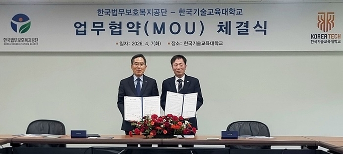 한국법무보호복지공단과 한국기술교육대학교는 7일 충남 천안에 위치한 한기대 본관에서 ‘법무보호사업 온라인 교육체계 구축 및 관학 협력 강화를 위한 업무협약(MOU)’을 체결했다.