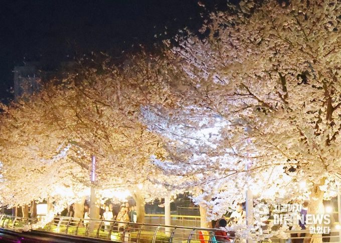 ‘금석첨화’ 의 매력은 낮과 밤을 가리지 않고 빛나고 있다. 한낮에는 파란 하늘 아래 흩날리는 벚꽃이 화사한 봄의 절정을 보여주고 있으며 야간에는 산책로를 은은하게 밝히는 경관조명이 가동되어 로맨틱한 봄의 분위기를 연출하며 늦은 저녁 시간에도 야간 벚꽃 산책을 즐기며 사진을 남기는 시민들로 북적였다.