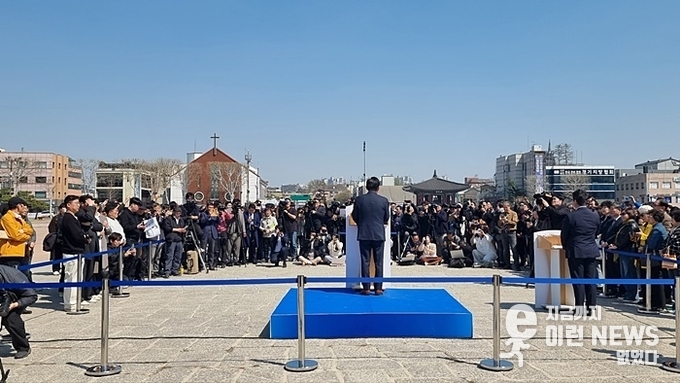 이날 광장에는 약 500~600여 명의 지지자와 시민, 언론 관계자들이 모였고, 현장은 출마 선언을 앞둔 분위기 속에 차분한 긴장감이 감돌았다.