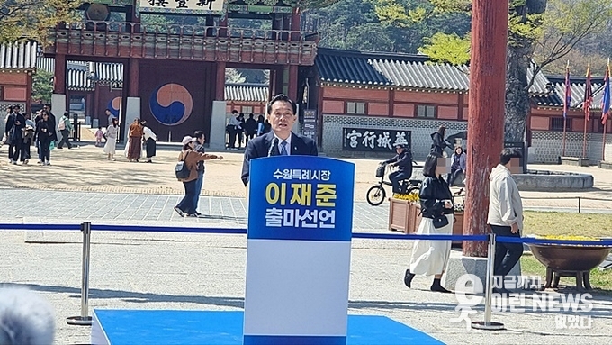 이재준 수원특례시장은 인사를 나눈 뒤 단상에 올라 마이크를 잡았다. “수원 대전환의 완성을 위해 민선 9기 수원시장 재선에 출마합니다”