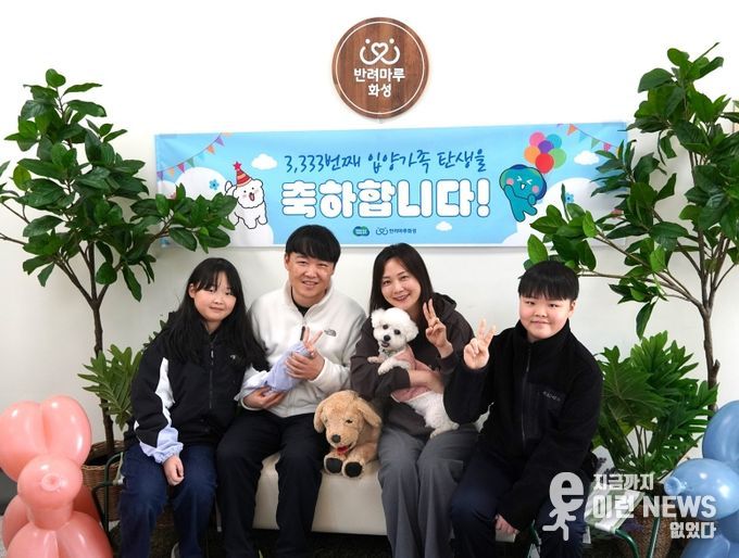 이런뉴스(e-runnews) 김삼성 기자 | 경기 서부권을 대표하는 반려동물 테마파크 ‘반려마루 화성’에서 3,333번째 입양가족이 탄생했다. 2013년 ‘경기도 도우미견나눔센터’로 처음 문을 연 이후 13년 만에 거둔 성과로 ‘반려마루 화성’은 그동안 유기견 3,068마리, 유기묘 265마리를 입양시켰다.