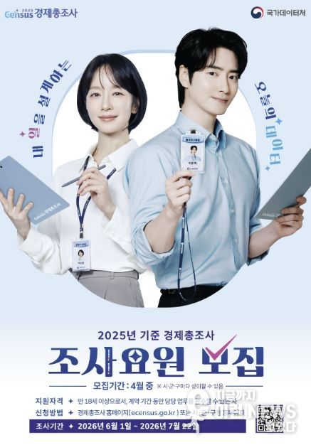 접수 기간은 4월 13일부터 15일까지로, 경제총조사 누리집에서 신청하거나 덕양구청·일산동구청·일산서구청 자치행정과 방문 및 전자메일을 통해 신청하면 된다.