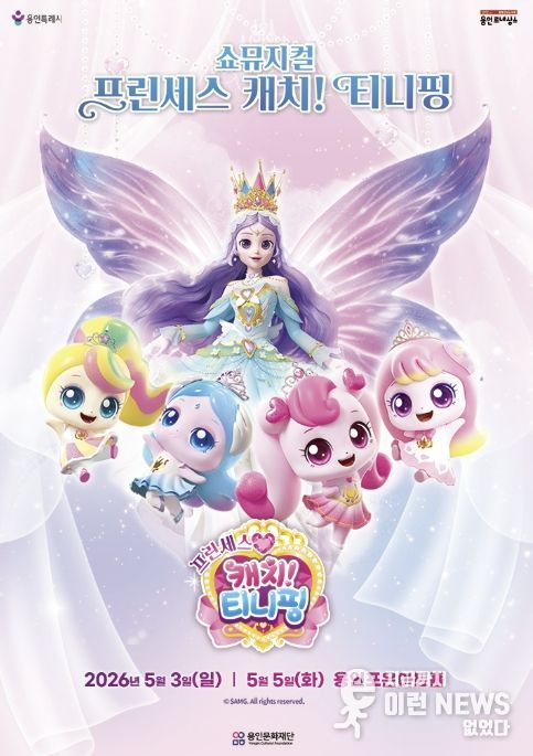 이런뉴스(e-runnews) 김삼성 기자 | 용인문화재단은 어린이날을 맞아 온 가족이 함께 즐길 수 있는 특별 공연, 쇼뮤지컬 '프린세스 캐치! 티니핑'을 오는 5월 3일과 5일 양일간 용인포은아트홀에서 선보인다.