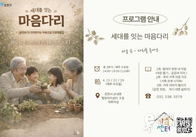 최선희 더 큰 행복 포천시가족센터장(겸임 가족여성과장)은 “이번 프로그램은 지역사회 전문가와 협력해 어르신들에게 실질적인 소통 방법을 전달하는 뜻깊은 기회가 될 것”이라며 “앞으로도 찾아가는 맞춤형 서비스를 통해 세대 간 공감이 살아 있는 따뜻한 지역사회를 만드는 데 힘쓰겠다”고 말했다.