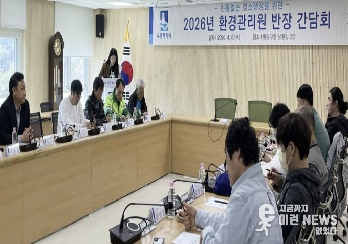 이런뉴스(e-runnews) 김삼성 기자 | 수원시 팔달구는 지난 8일, 관내 각 동 행정복지센터 환경관리원 반장들과 간담회를 가졌다.