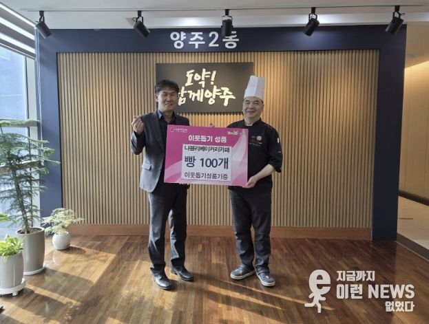 이런뉴스(e-runnews) 김삼성 기자 | 양주시 양주2동 행정복지센터는 최근 나블리베이커리카페에서 어려운 이웃들에게 전달해달라며 빵 100개를 기부했다고 밝혔다.