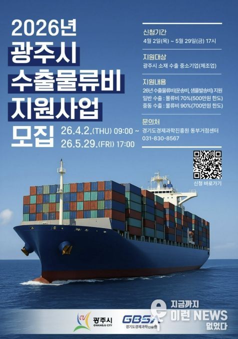 이런뉴스(e-runnews) 김삼성 기자 | 광주시와 경기도경제과학진흥원은 지역 내 중소기업의 수출 경쟁력 강화를 위한 ‘광주시 수출물류비 지원사업’ 참여 기업을 4월 2일부터 5월 29일까지 모집한다고 10일 밝혔다.