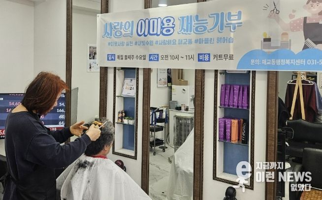 이런뉴스(e-runnews) 김삼성 기자 | 수원시 팔달구 매교동 행정복지센터는 지난 8일 매교동 소재 마를린 헤어숍과 함께 ‘사랑의 이미용 서비스’를 실시했다. 이날 머리 손질을 희망하는 관내 어려운 이웃 16명에게 커트 및 드라이 서비스를 제공하며 따뜻한 나눔의 시간을 가졌다.