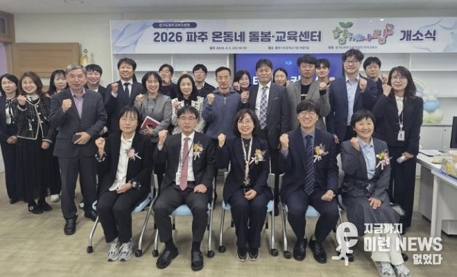 이런뉴스(e-runnews) 김삼성 기자 | 경기도파주교육지원청은 4월 8일, 물향기초등학교 내 파주 온동네 돌봄·교육센터 ‘함께자람’ 개소식을 개최했다. ‘함께자람’은 학교 안팎의 다양한 지역자원을 연계해 초등학생에게 정규수업 이후 돌봄·교육 통합 서비스를 제공하여 학생들이 함께 성장할 수 있도록 지원하는 지역 거점형 센터이다.