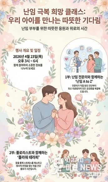 프로그램은 총 2부로 구성된다. 1부에서는 관내 난임 전문의를 초빙해 난임에 대한 전반적인 이해를 돕는 강의를 진행하고, 질의응답 시간을 통해 전문의와 직접 소통하며 궁금증을 해소할 수 있도록 했다. 2부에서는 화초전문가(플로리스트)의 지도로 ‘플라워 테라피’ 프로그램을 운영해 참여자들의 심신 안정과 정서적 회복을 도울 예정이다.