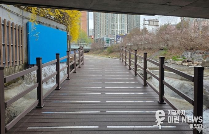 구는 성복천 배수통문을 정비하고, 산책로와 자전거도로도 함께 정비해 보행 환경과 이용 안전성을 개선했다.