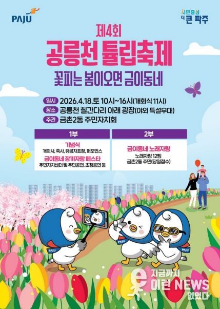 이런뉴스(e-runnews) 김삼성 기자 | 파주시 금촌2동 주민자치회는 오는 18일 공릉천 칠간다리 아래 광장에서 '제4회 공릉천 튤립축제'를 개최한다.