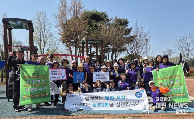 이런뉴스(e-runnews) 김삼성 기자 | 양주2동은 13일 지역 공원 일대에서 환경정화 봉사활동과 청렴캠페인을 함께 실시하며 깨끗하고 투명한 지역사회 조성에 나섰다.