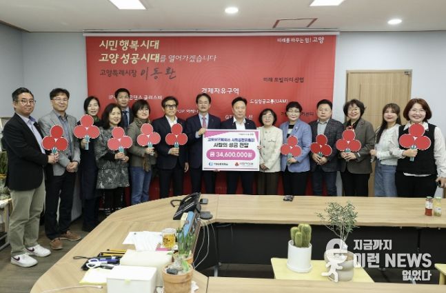 14일 시에 따르면, 이번 성금 전달식에는 이동환 고양특례시장을 비롯해 김교원 고양상공회의소 사회공헌위원장, 이경아 경기북부사회복지공동모금회 본부장 등 19명이 참석했다.